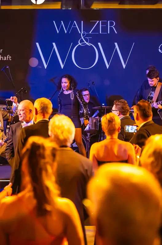 Parallel dazu entwickelte sich eine musikalische Dramaturgie, die ihresgleichen sucht: Im Ballsaal sorgten Swing und zeitlose Klassiker für elegante Bewegung, im Pavillon traf Live-Band-Energie auf moderne Club-Sounds, im Bellevue wurde die Nacht urban und international. Der Wintergarten setzte einen bewussten Kontrapunkt, mit unmittelbarer Nähe zur Bühne, charmanter Performance und mitreißendem Gesang entstand dort eine intime, fast persönliche Atmosphäre mitten im großen Ballgeschehen. Jeder Raum hatte seinen eigenen Sound und doch ergab alles ein stimmiges Ganzes.