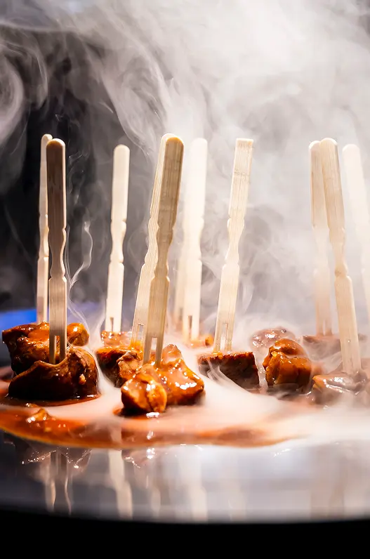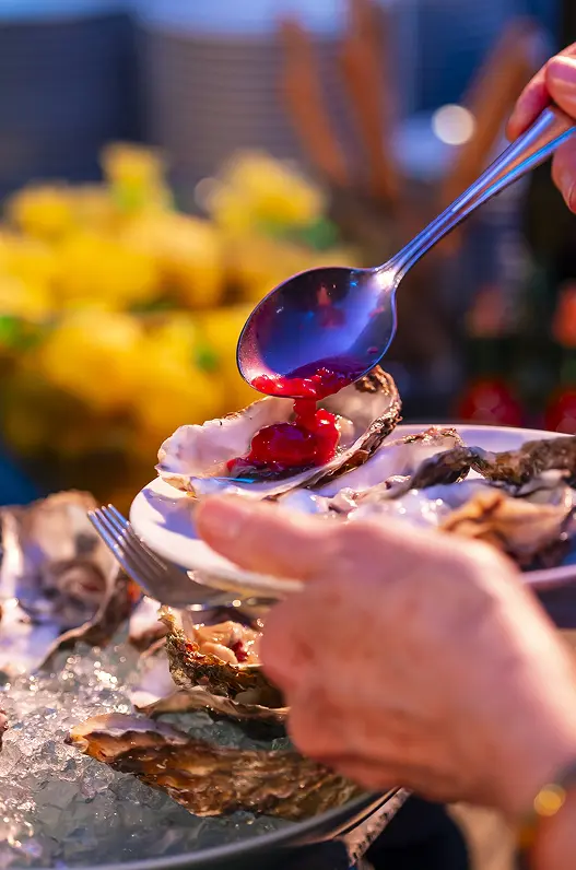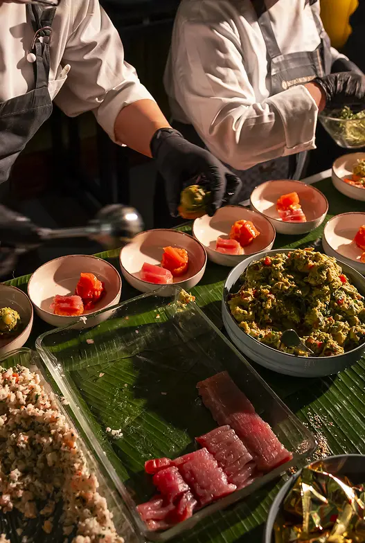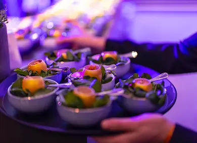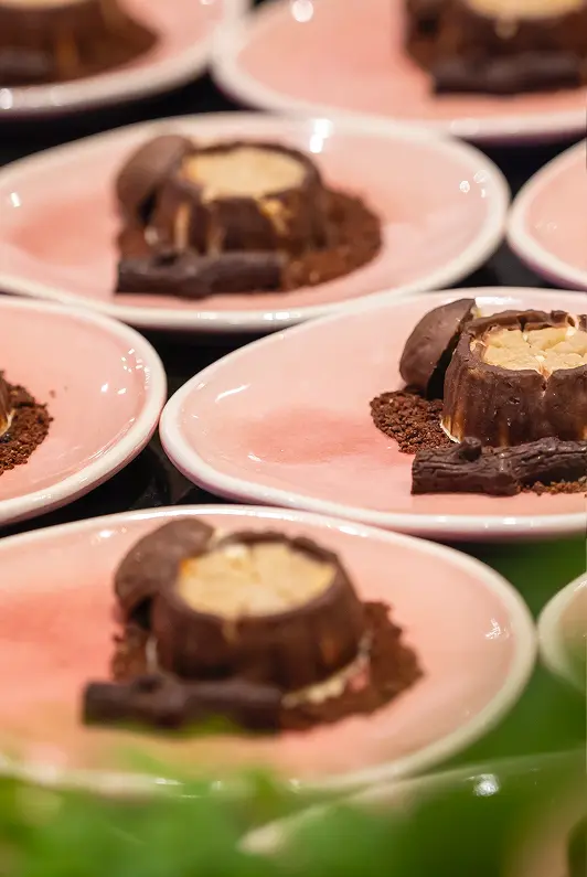 Farkas Catering präsentierten geschmorte Ochsenbäckchen in aromatischer Hibiskusjus – kraftvoll, floral, ausbalanciert – und zeigten mit einer ebenso durchdachten veganen Variante, dass Tiefe und Charakter keine Frage tierischer Zutaten sind.