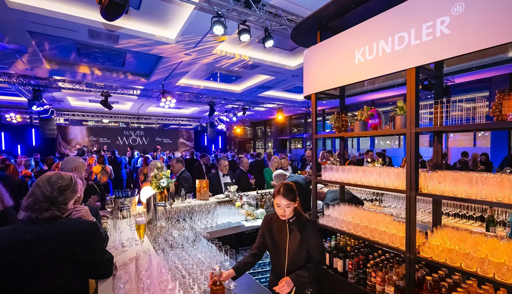 Mitten im festlichen Glanz des VBKI Balls der Wirtschaft gestaltete Allianz Kundler einen eigenen Bereich im InterContinental Berlin – als Ort für Stil, Substanz und Begegnung. Schon beim Eintreten wurde deutlich: Hier geht es um mehr als eine Bar. Es geht um Atmosphäre. Die elegant inszenierte Theke mit warmem, goldenem Lichtband schien beinahe zu schweben. Schwarze Marmorelemente, klare Linien, stilvolle Glasregale und dezent platzierte Pflanzen schufen eine moderne, urbane Lounge-Ästhetik. Darüber präsent: der Name KUNDLER. Ein selbstbewusstes Zeichen für Qualität und Präsenz. Reihen perfekt polierter Gläser standen bereit. Champagnerkühler glänzten im Hintergrund. Die Lichtinszenierung spielte mit warmen Gold- und kühlen Violetttönen… eine Balance aus Glamour und Ruhe. Das Menü war bewusst reduziert und hochwertig kuratiert: Champagner aus Château-Thierry, ausgewählte Weine, Biere sowie anspruchsvolle alkoholfreie Alternativen. Nichts wirkte zufällig, alles durchdacht.